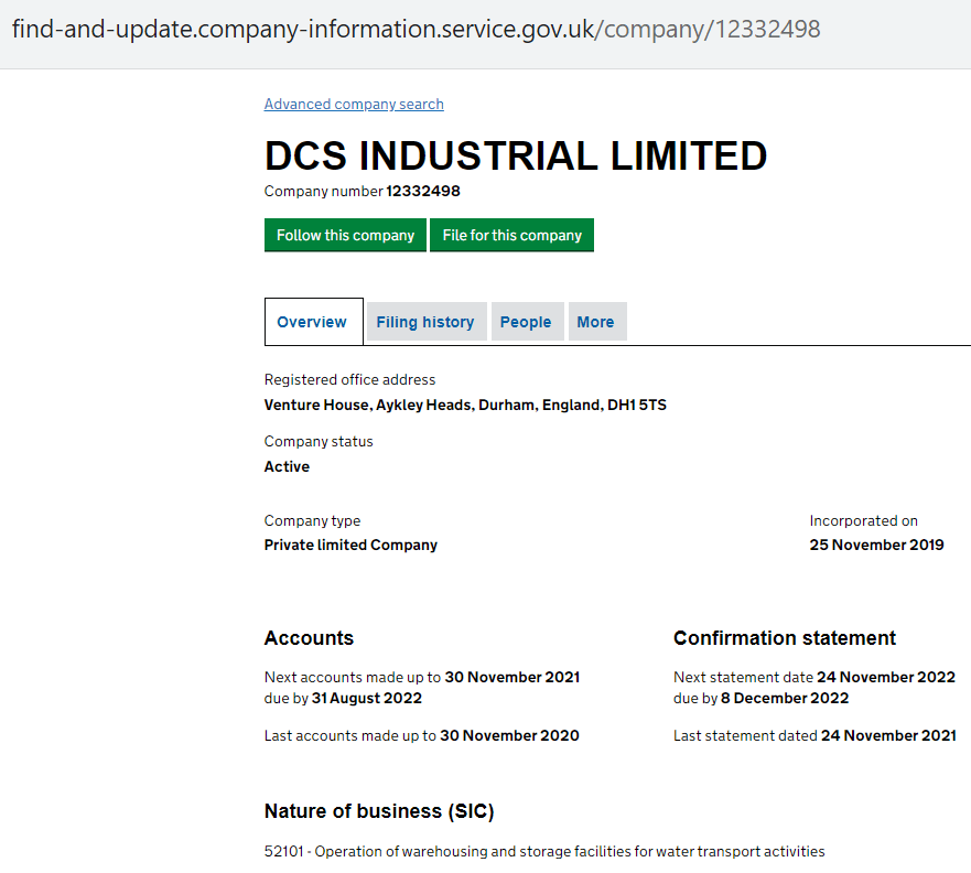 Here is the overview of DCS Industrial Ltd on the Companies’ House register: