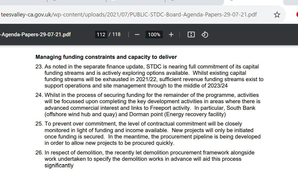 The same paragraph also makes clear that future income is dependent on ‘Teesworks Limited’s … realisation strategy’ and also the ‘dividend strategy adopted by the Board of Teesworks Limited’. All of which suggests that the key decisions are now being made by the Teesworks Limited board and not by the STDC board.