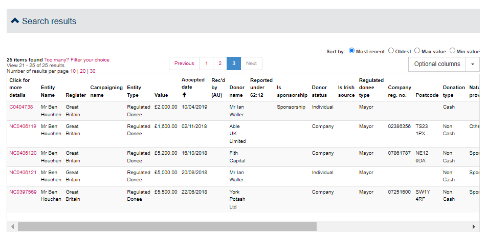 Houchen’s manifest enthusiasm for this project was possibly helped along by a donation worth £5,000 two months earlier from Corney’s father-in-law and co-director, Ian Waller: