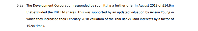 Shortly after the submissions of written evidence, but before the start of the hearing itself, SSI and the Thai banks withdrew their objections to the CPO, and before the hearings were completed, a deal had been struck with STDC. We know, from comments made by Houchen when the JV with Corney and Musgrave was finally made public (in July 2020), that the developers participated in those negotiations.