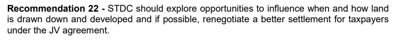 TVCA CEO, Julie Gilhespie in recent months, asked the developers to consider this renegotiation. Combine their refusal with Barnes’ appointment and the question arises as to who is really in control of the project. The developers must realise that a less than robust response by the mayor to the recommendations of the Review puts his future in office in jeopardy. He is already under threat of investigation (although the new government has been more than a little vague in recent months about what its intentions are).