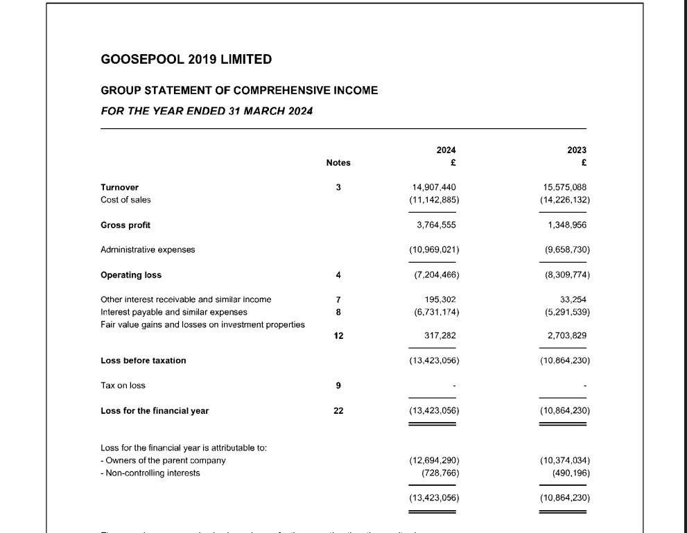 Latest accounts from Teesside Airport holding company, Goosepool 2019, showing losses of £13.4 million