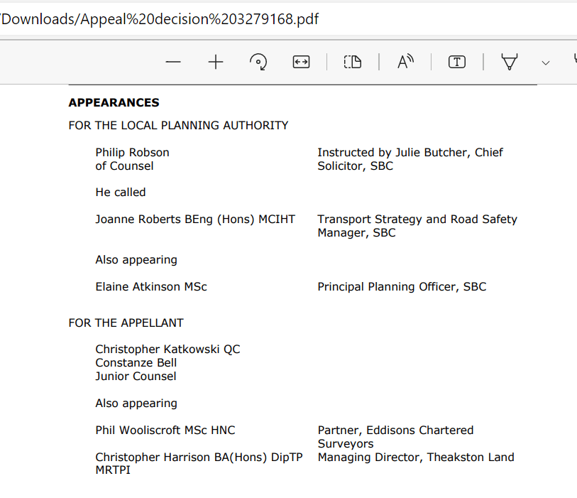 What that document also points out, however is that any interested party is entitled to make representation at a planning appeal inquiry. The Appeal decision shows that four people did so – one of the councillors for Yarm ward, and three local residents. (Vickers himself did not attend. He was in the House of Commons on those days). This raises the question as to whether, at that point, any other interested party might usefully have made representation to the inquiry. Is there anyone else who has a particular interest in housing development in the area?