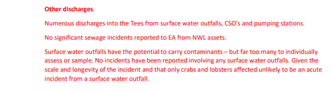 At this point, we get an inkling of why Defra may have been reluctant to make this information public. It shows not that Teesworks has been exonerated, but that the EA failed to undertake a thorough investigation in good time. In fact, it was doing little more than go through the motions of an investigation. And Defra went further, by setting out to dismantle their evidence of pyridine contamination in crab and lobster tissue. And then invented another explanation (algal bloom), and then another (unknown pathogen). And threw the North East fishing industry under the bus in the process. Because it was expedient. Because it was deemed essential that no spotlight be shone on Teesworks. Culpability denied.