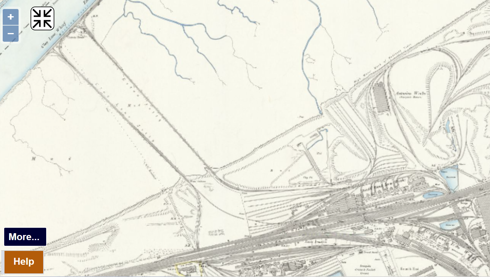 There are no watercourses here. However, if we look at historical maps the situation is quite different. Here is the map of the site as it was in 1895: