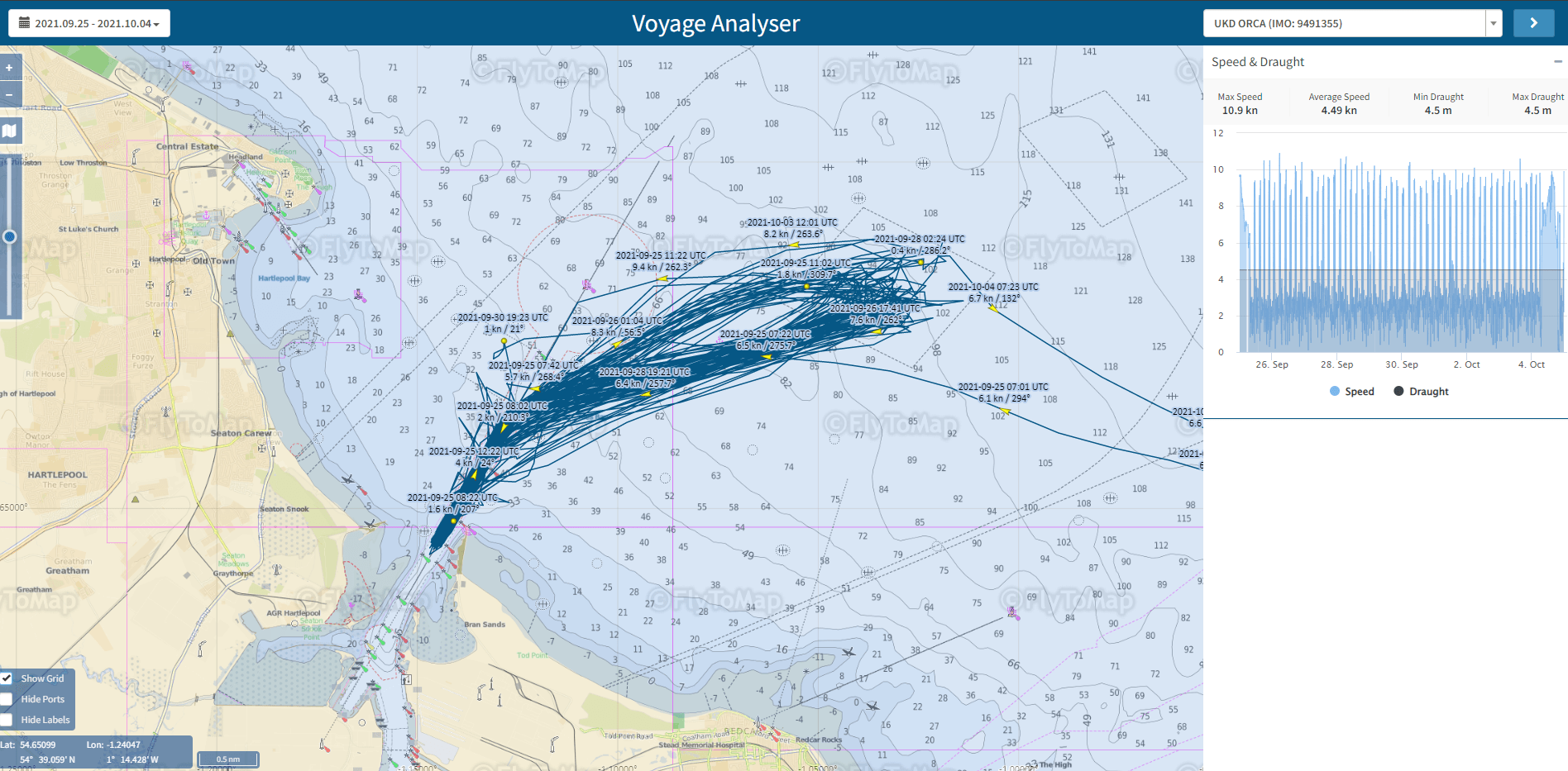 Below is the tracking data of the Orca’s movements while it was in the Tees Bay area: