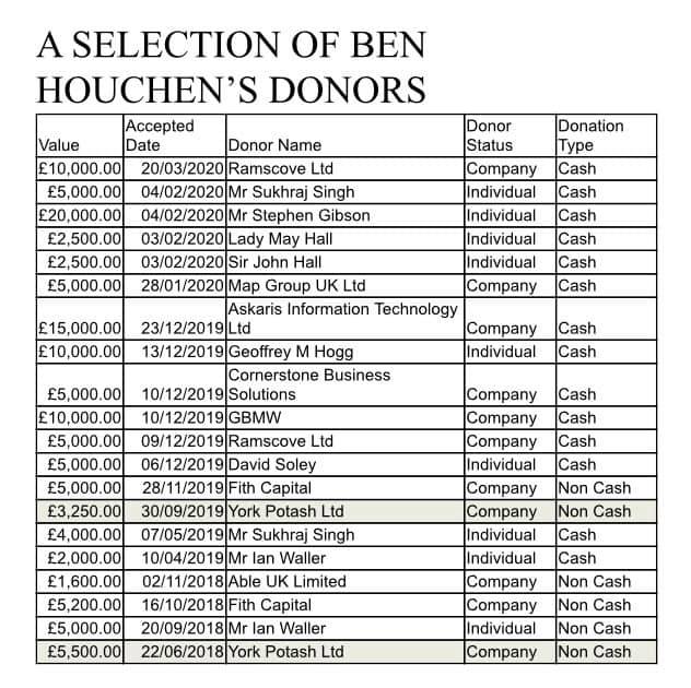 Some of his donors are well known. Sir John Hall, former chairman of Newcastle United FC, and his wife are long-term donors to the Conservative Party, as is Marc Pennick, whose donation was made through one of his companies, Fifth Capital (Pennick was the person who chartered a helicopter to fly Boris Johnson and Simon Clarke MP up from London in April 2019 to support a fundraising event for Houchen (gazettelive.co.uk)). Steve Gibson, chairman of Middlesbrough FC and board member of the South Tees Development Corporation, is also well known to people in this region.