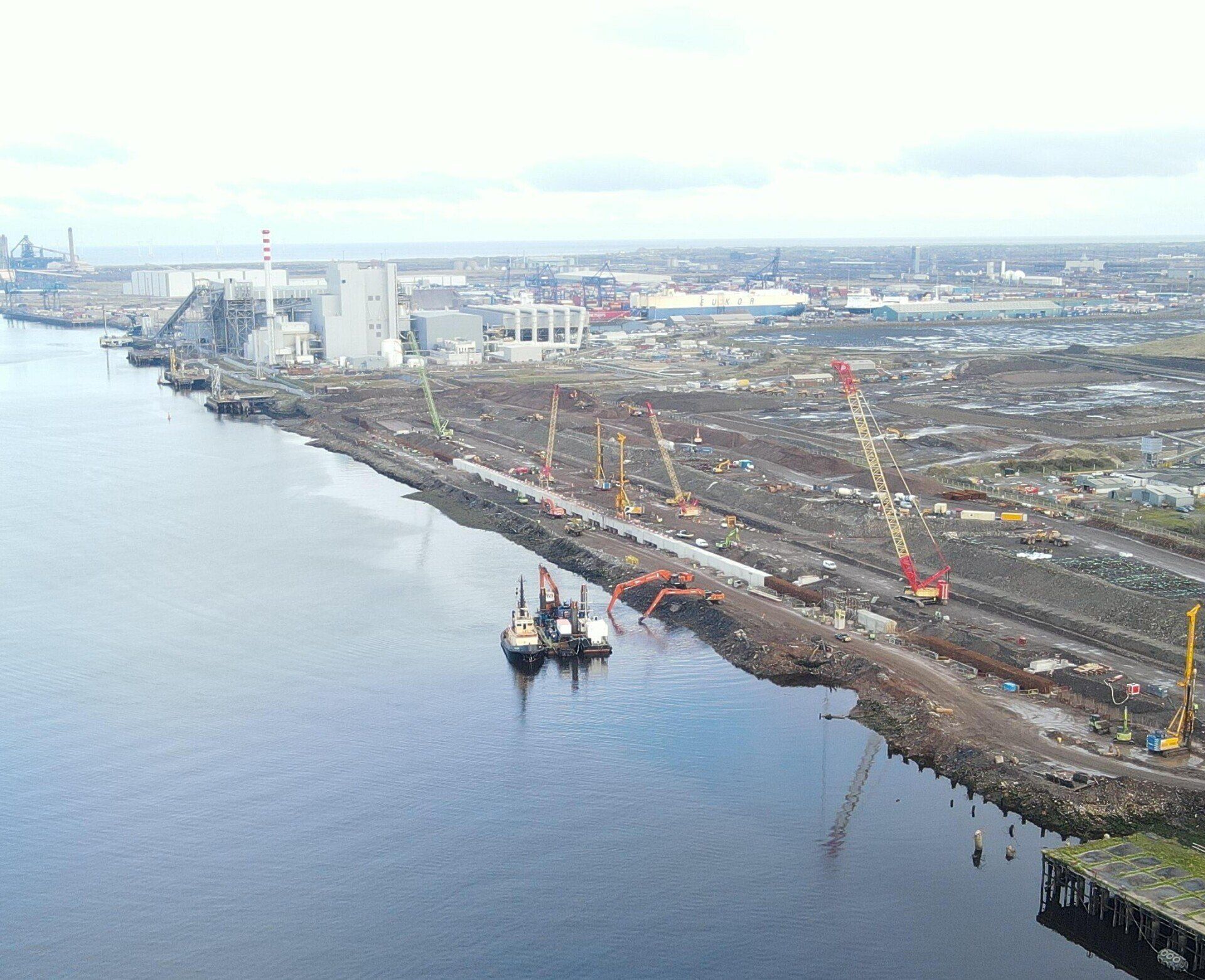 Construction work and dredging at Teesworks. Photo courtesy of Grecko Indie Media