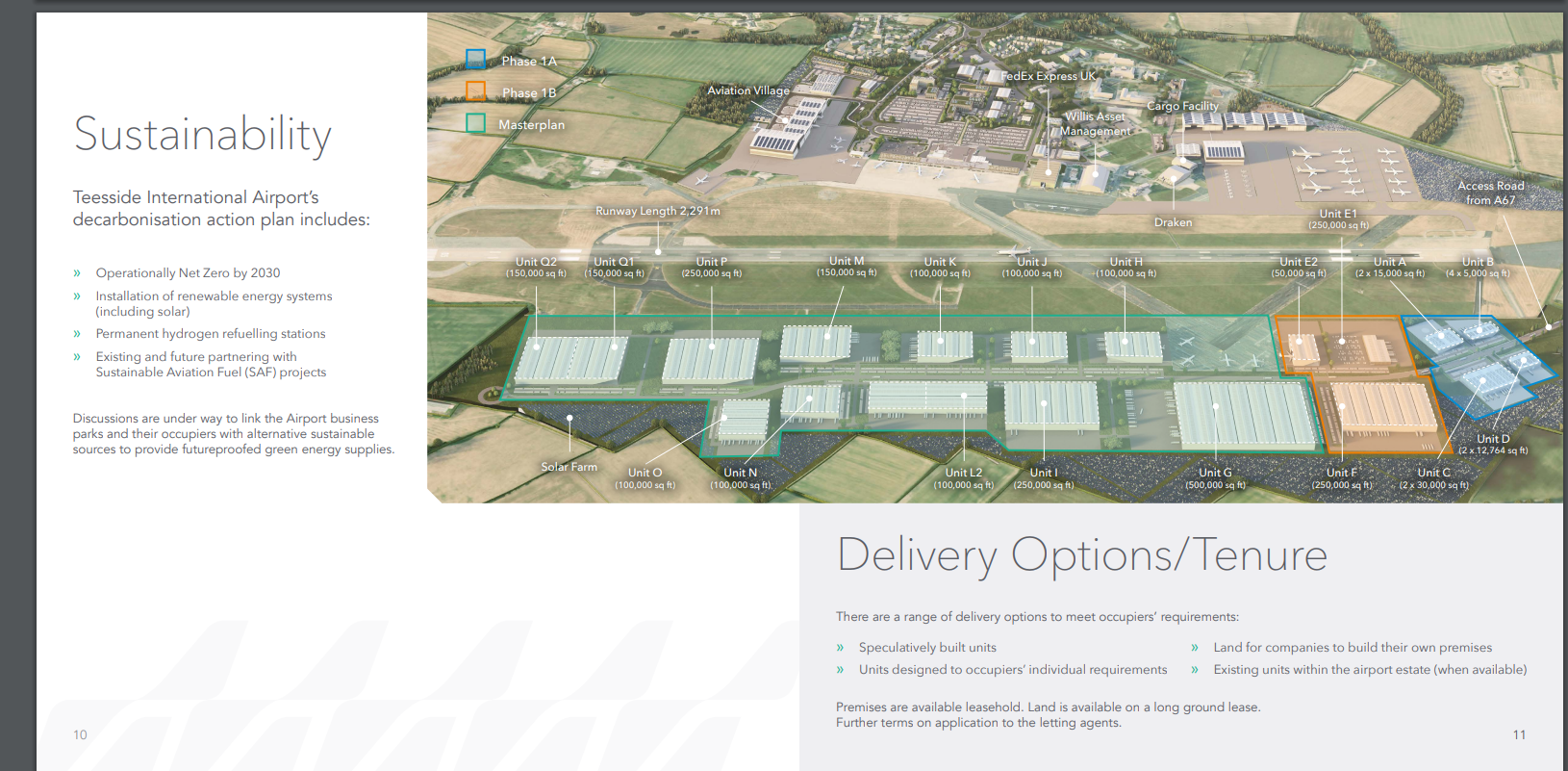 The TVCA business case for acquiring the airport recognized that in order to become commercially viable the estate needed to be redeveloped at the same time as increasing aviation traffic, and so copied Peel’s business park plan with some small, but significant modifications.