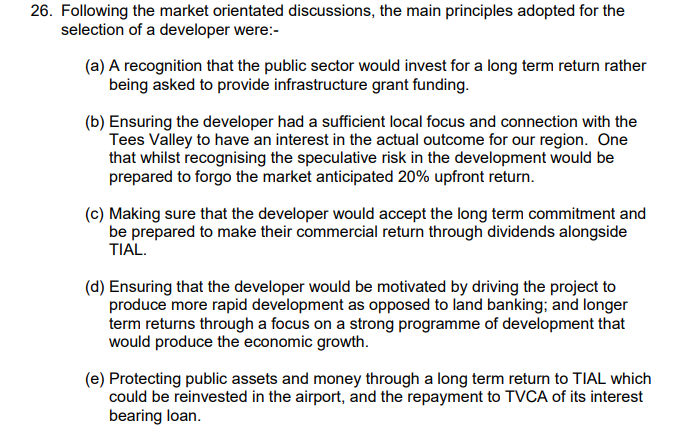The review as it stands clearly exposes Houchen’s motivation as promoting the interests of the developers, and of Corney in particular over the public interest and has scant regard for value for money. Had they been able to include the airport, they would have seen that his public pronouncements about commercial viability and the ten-year turnaround plan equally cannot be taken at face value. For the panel properly to have understood what was happening at STDC they needed perspective. The airport would have provided that. And to properly judge whether Houchen’s actions constitute wrong doing, the airport has to be included.