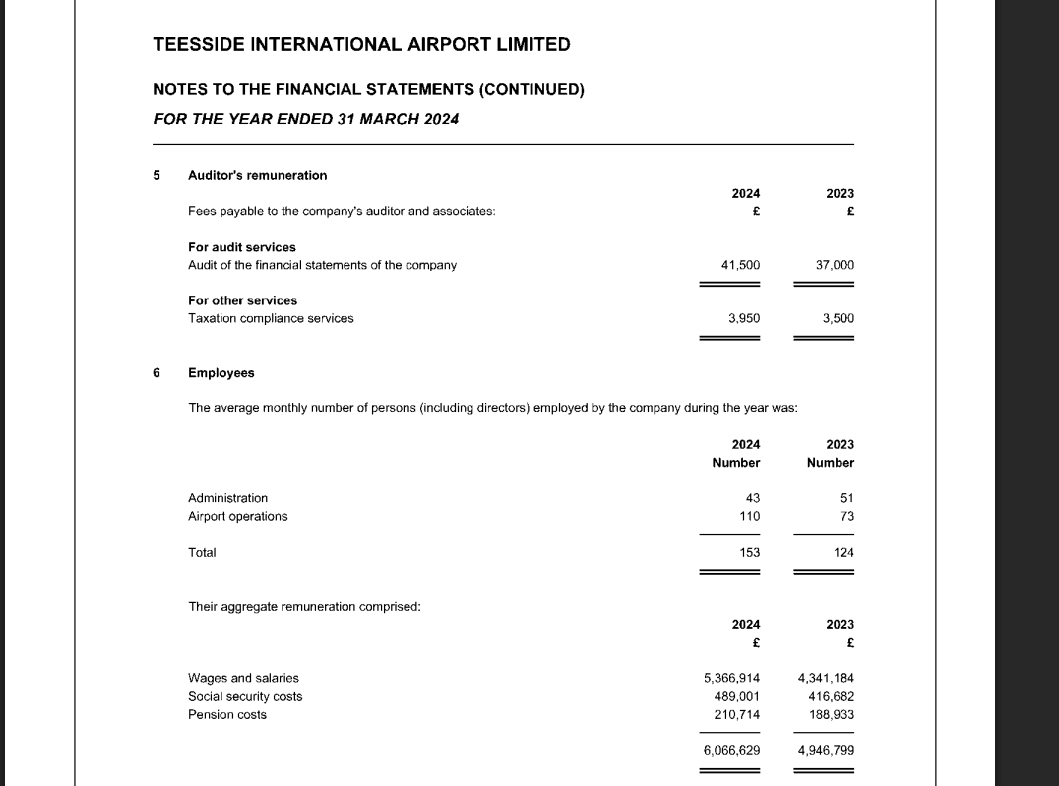 Overall staff numbers rose from 124 in 2023 to 153 in 2024, the wage bill rose by £1 million, and staff in airport operations rose by 50%.