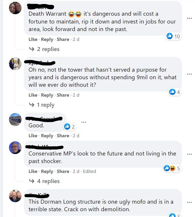 When the news came through that Nadine Dorries had rescinded the grade II listing for the tower, we published an article critical of the decision, and shared it on a number of sites. On one of the Facebook pages where we posted it, we received an enormous response, almost all of it hostile, either to the preservation of the tower, or to those who campaigned for it, or the author of the article. Here’s a selection of their original comments: