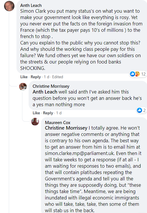 These manifestly racist comments attracted no response. Clarke’s comms team knows better. The- ‘we need much harder racism from you’ -type of comment is actually grist to the mill for Clarke. Keep the racists wanting more, and you keep them on side. They are not repudiating him with their cynicism, and with their talk of an ‘invasion of illegal economic immigrants’ they are egging him on. His Facebook page both serves as their platform, and as a source of news with which to feed their outrage.