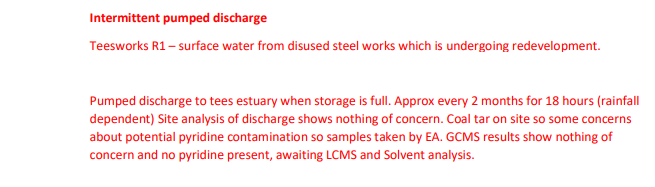 This is both dubious and curious. Dubious because it directs attention away from Teesworks as the possible source; curious because it turns out that the EA had already undertaken some investigation on the Teesworks site in 2021 and found no pyridine there. So did Teesworks already have a clean bill of health?