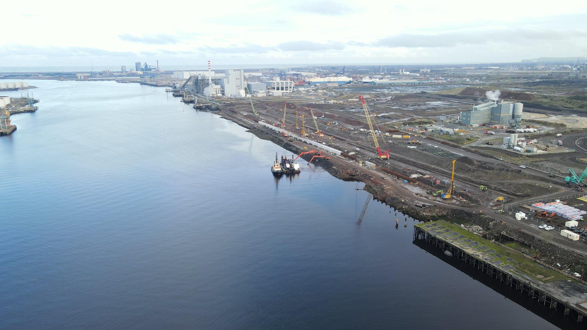 Construction work and dredging at Teesworks. Photo courtesy of Grecko Indie Media