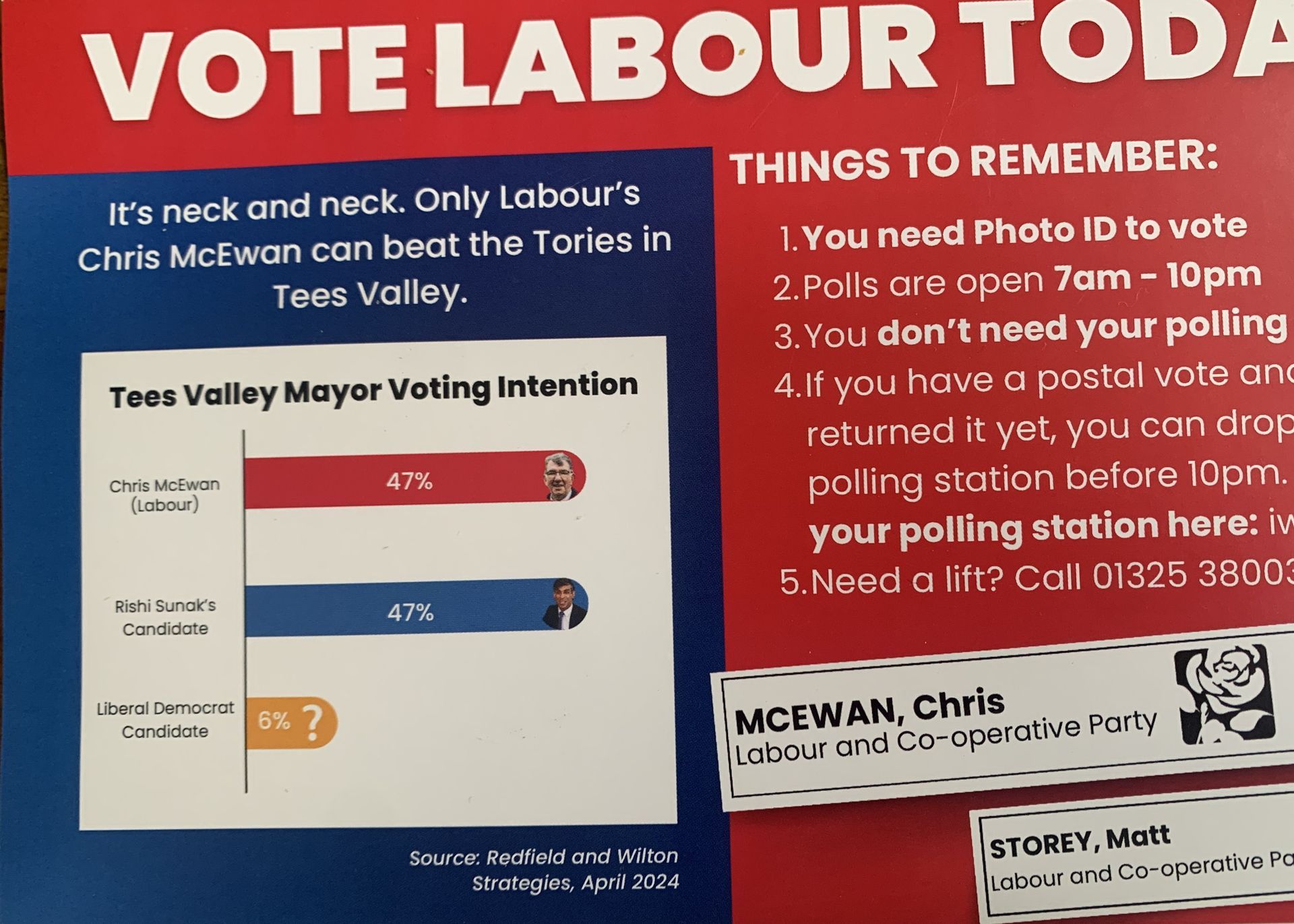 For his Labour opponent, the situation was different. He represents a party that is around 20 points ahead in national opinion polls, while the Tories’ projected share seems to be deteriorating by the day. He is an experienced local councillor and is well liked. Moreover, the incumbent’s standing has taken a battering in the years since the last mayoral contest – financial scandal, a serious pollution incident, which despite official denials, is believed by many locally to be linked to ongoing work at Teesworks, an official review into Teesworks and the South Tees Development Corporation in which he was heavily criticized, an enormous bill for court costs following a dispute with PD Ports, and the airport that he brought into public ownership posting huge annual losses. So, for Chris McEwan, it was all to play for. Houchen’s position was not unassailable after all.