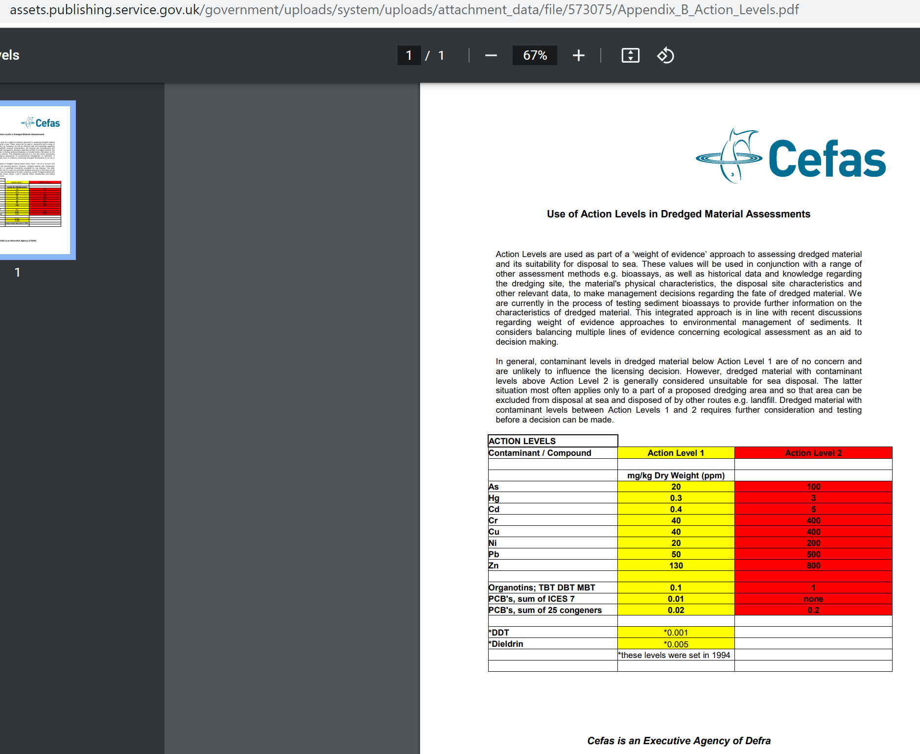Cefas Action Levels