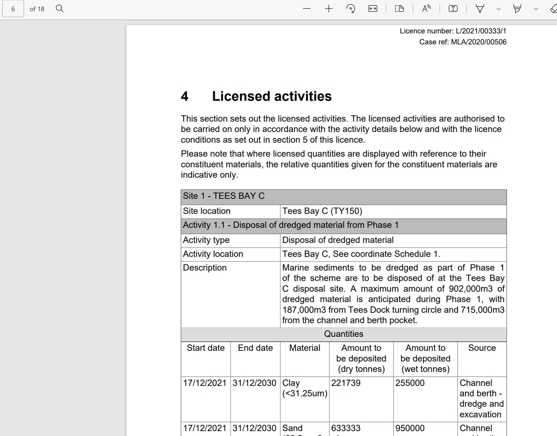 The licence allows for 715,000m3 to be dredged from the channel and berth pocket alone. So the 125,000m3 given in the press release amounts to about one fifth of the permitted dredge.