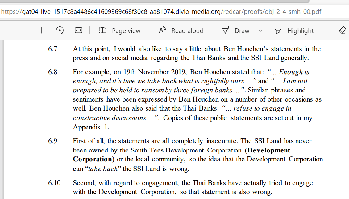 Houchen’s claim here seems to indicate that SSI’s earlier objection had hit a raw nerve. And we might surmise that the reason that the corporation had removed Redcar Bulk Terminal from the CPO was precisely because it couldn’t fund the purchase at the time that the CPO was initiated, and the plan was to delay that purchase until a later date when more funding became available.