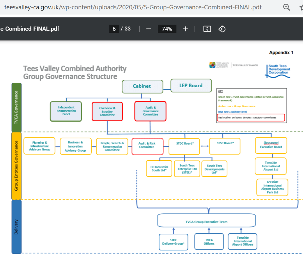When this document was published, South Tees Enterprise Ltd (STEL) was 100% owned by them. They had a 50% share in Teesside International Airport Business Park Ltd, and they owned DCS Industrial (South) Ltd. The document that contains this diagram mentions STEL only once, as contributing in some obscure way to the ‘rail management business case’. Furthermore, the role of DCS Industrial (South) is not mentioned at all.