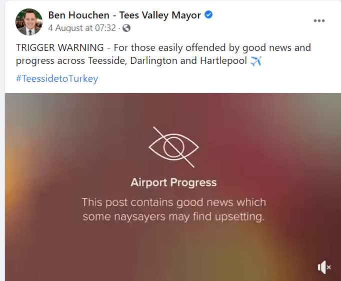 But Houchen’s advisors, far from levelling with the public and admitting that the airport is unlikely to become commercially viable as long as it relies overwhelmingly on the leisure market (as explained in this article), instead try to demonise their political opponents by branding them as ‘naysayers’. For many people, the gratuitous use of attack ads such as these, simply serves to diminish the credibility of the ones celebrating the airport’s purported success.
